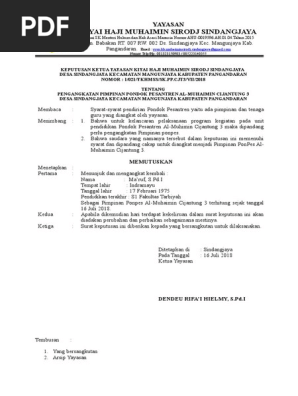 Sk Pimpinan Pondok Pesantren - Surat Permohonan Kesediaan Dari Pondok Pesantren Darunnajah Ma Had Tahfizul Qur An Syekh Ahmad Pdf Document - Maybe you would like to learn more about one of these?